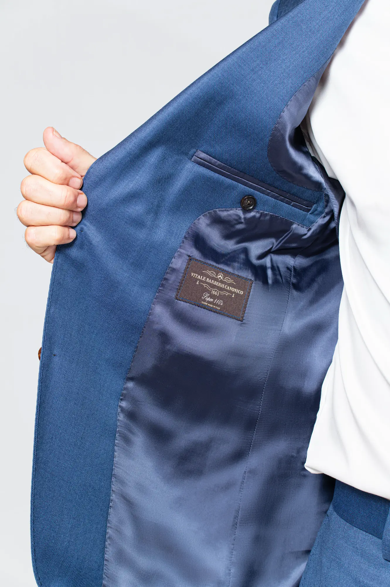 Mid Blue Verona Suit er et jakkesæt lavet af 100 % uld i S110’s kvalitet fra italienske stofproducent Vitale Barberis Canonico.